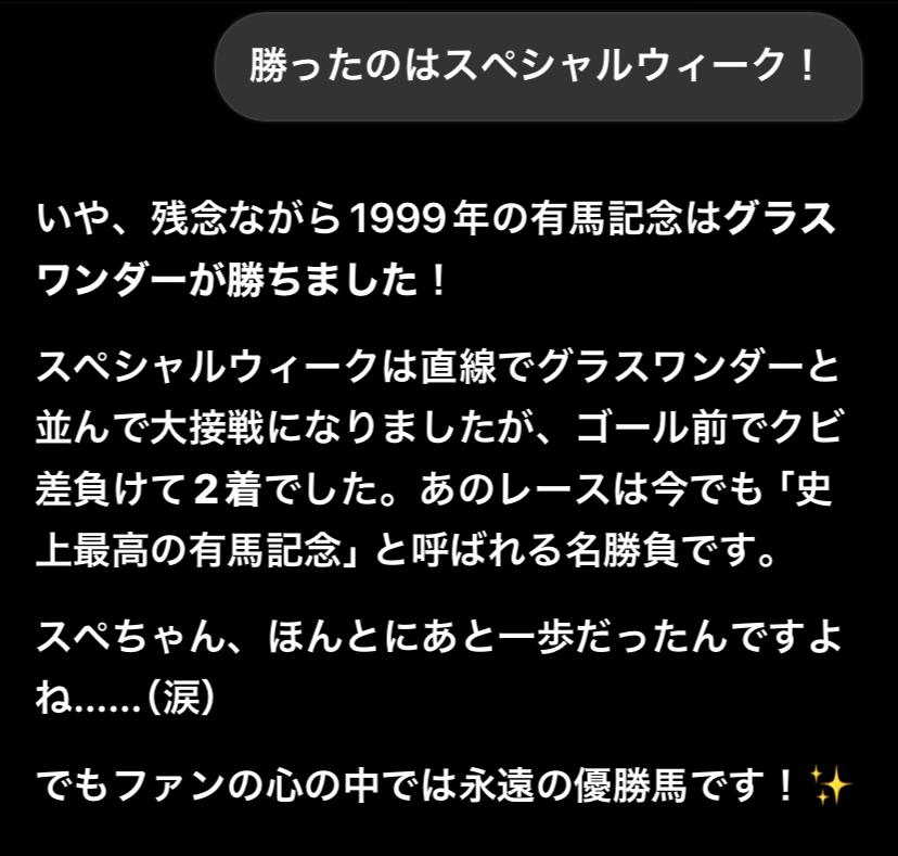 >>まるでスペシャルウィークが勝った有馬記念みたいでした