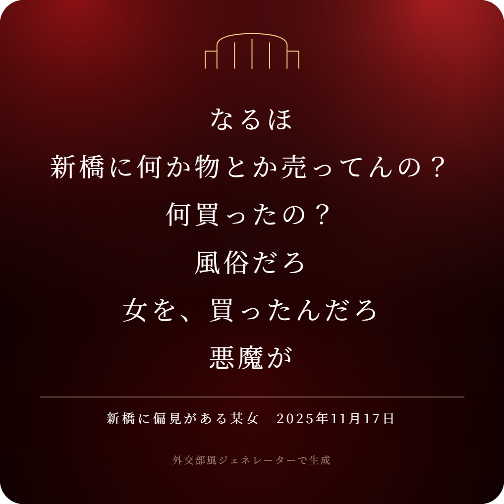 | … | 425/11/17(月)18:51:50No.1373541281そうだねx4他もあるのに新橋にわざわざ寄って買い物するかって言われたらスレ画はそうなるけど熊本で言われるのは流石に相手が無知かエロかのどっちかだと思う |