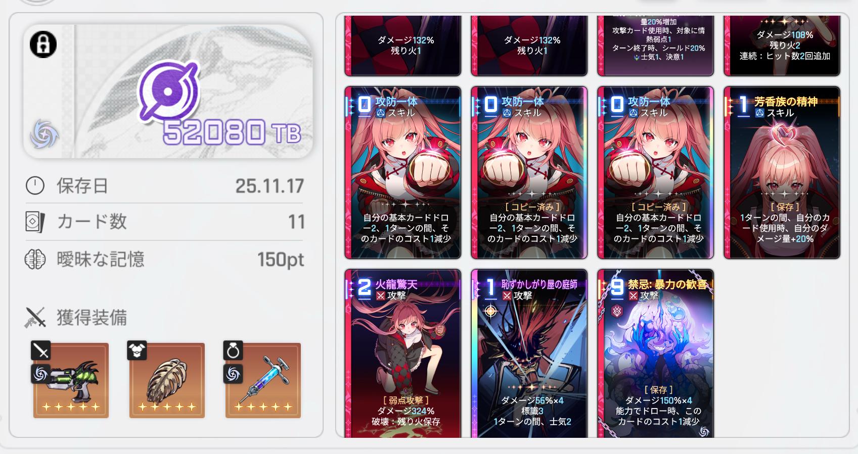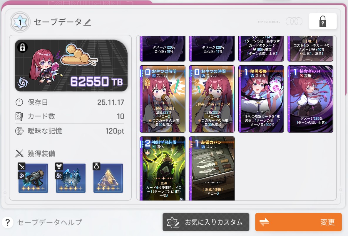 | … | 2025/11/17(月)21:40:07No.1373612621そうだねx1メイリンで基本カードのヒット数増えるやつ引けたら勝ったな…ってなる |