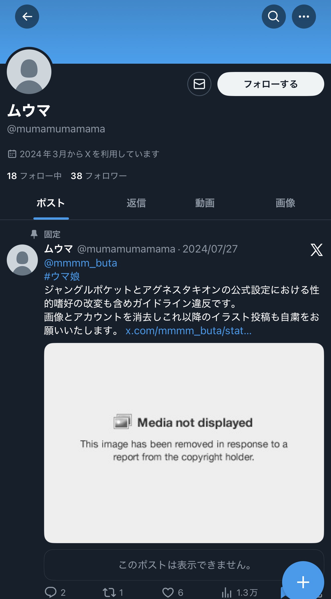 | … | 1025/11/19(水)17:09:40No.1374137680そうだねx2エアプでトレウマ云々語った結果スレ「」のアカウントはこうなった |