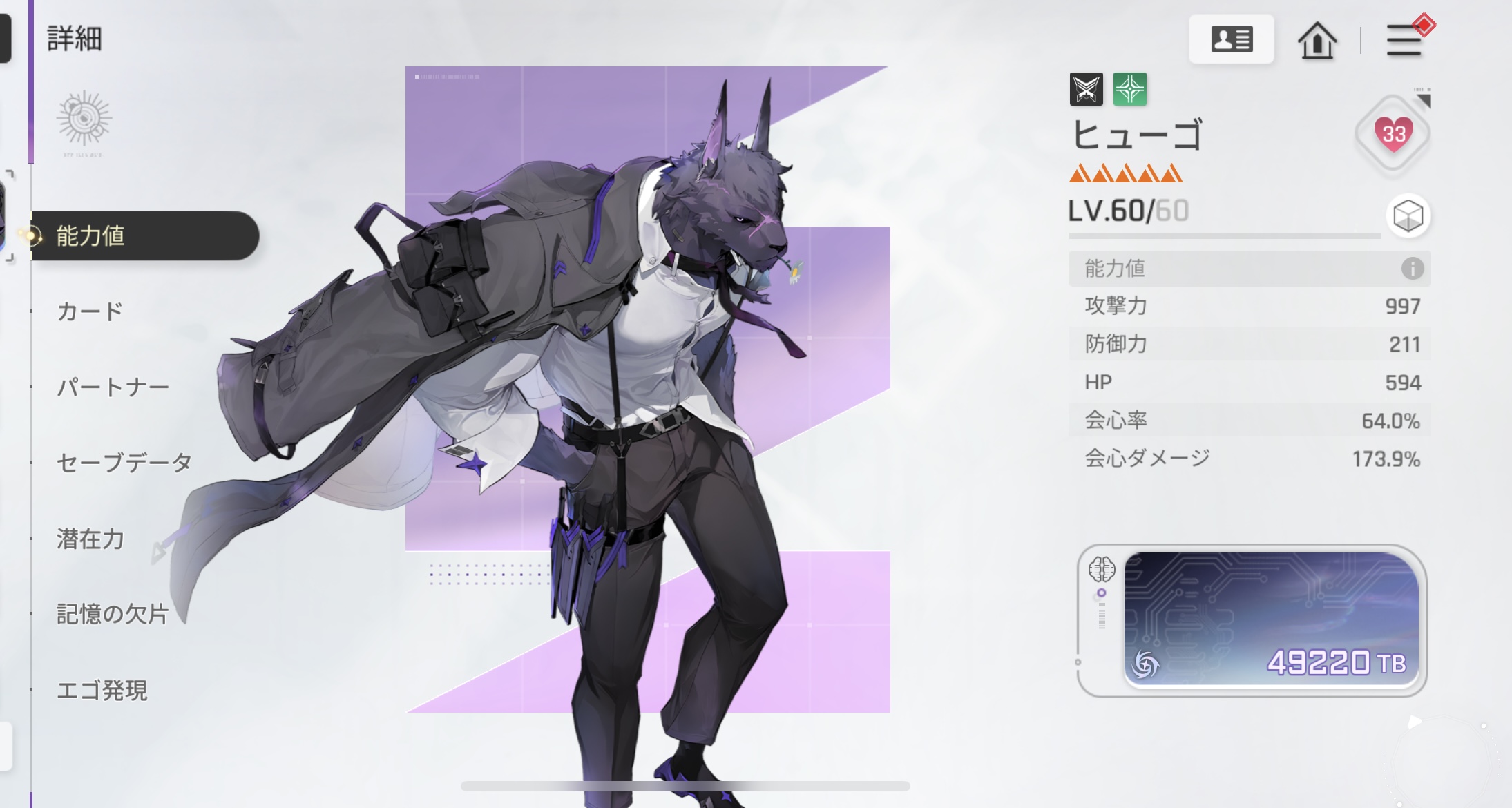 | … | 41725/11/20(木)17:07:06No.1374441559+>攻撃力に関してはサポーターのレベル60の時に☆5と☆3で割と大きな差があるから実数値意識するなら☆5サポーター付けないとダメだと思う >クマさんだと89でリリアンだと101なので☆5持ってないからわからんけど更に実数値は差が出るからそこに記憶の欠片理想値出せば攻撃力1000の会心60いけるはず… ストライカーならアームチェア探偵の60のステータスがアップデートのお知らせにあるよ 攻撃力113防御力5HP115 |