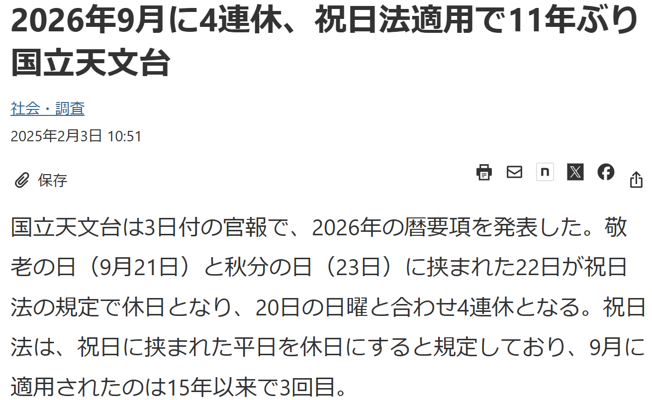 | … | 225/11/20(木)20:43:28No.1374511876そうだねx21平日を祝日で挟むと祝日になるぞ |