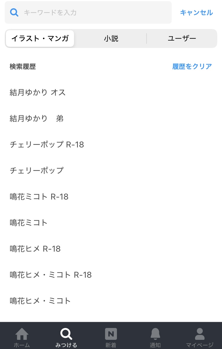「」の最新の検索履歴どんな感じ?