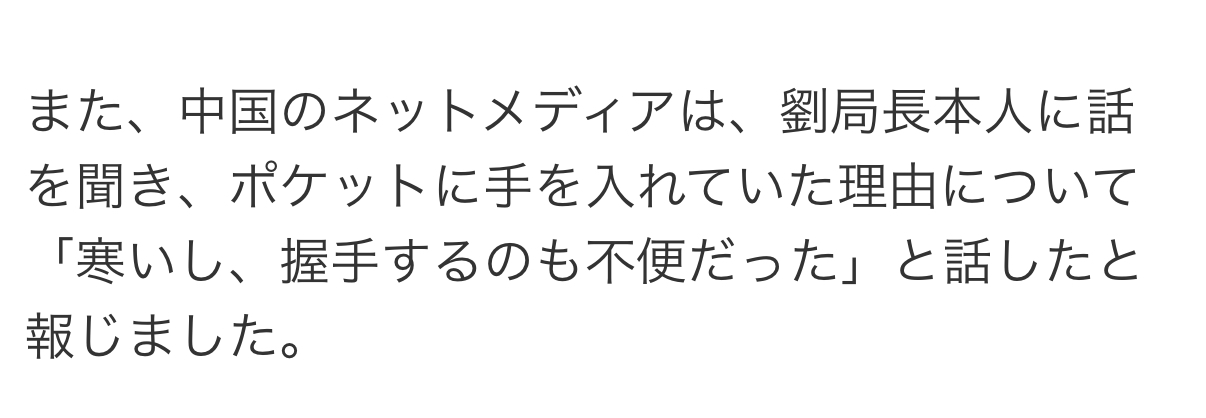 ポケットに手を入れるのは敵意がないことを示す中国式の礼儀作法とか言い出して駄目だった