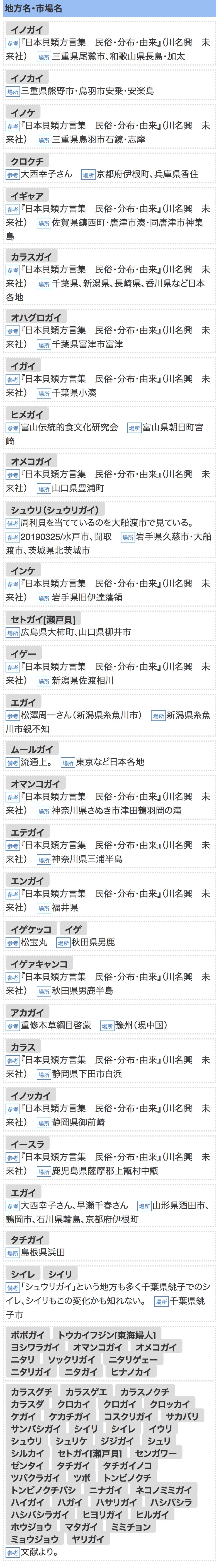 似たり貝、そっくり貝、姫貝、ヤリ貝、吉原貝、東海夫人など多くの異名を持つ