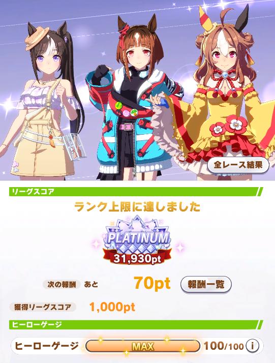 | … | 2325/11/26(水)12:11:46No.1376375989+チャンミプラチナはともかくリグヒのプラ4落とすのはサボりの結果だから受け入れろとしか言えないのだ… |
