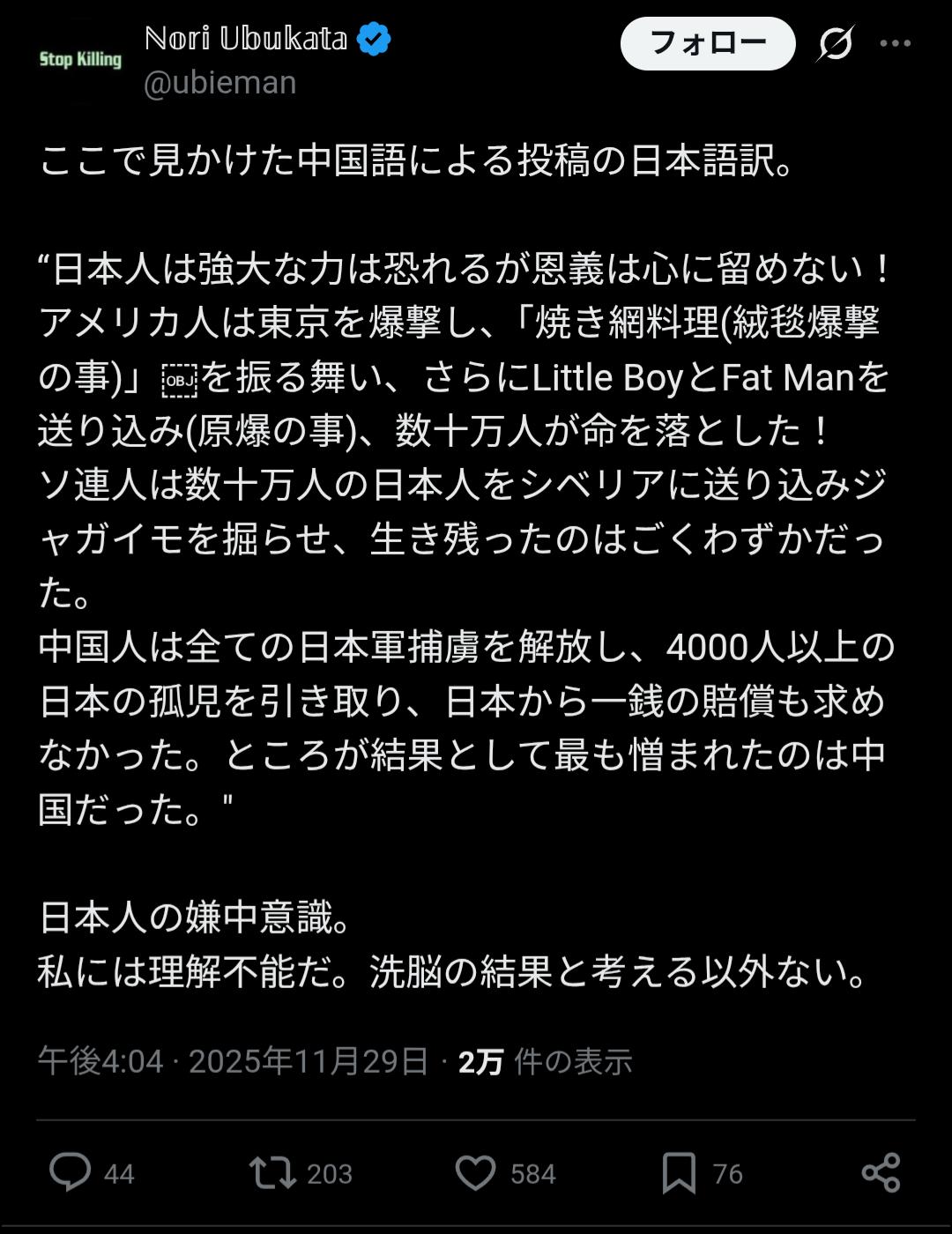 | … | 1225/11/30(日)08:54:09No.1377634935そうだねx6WW2〜直後の行いじゃなくてその後から現代までの行いがね… |