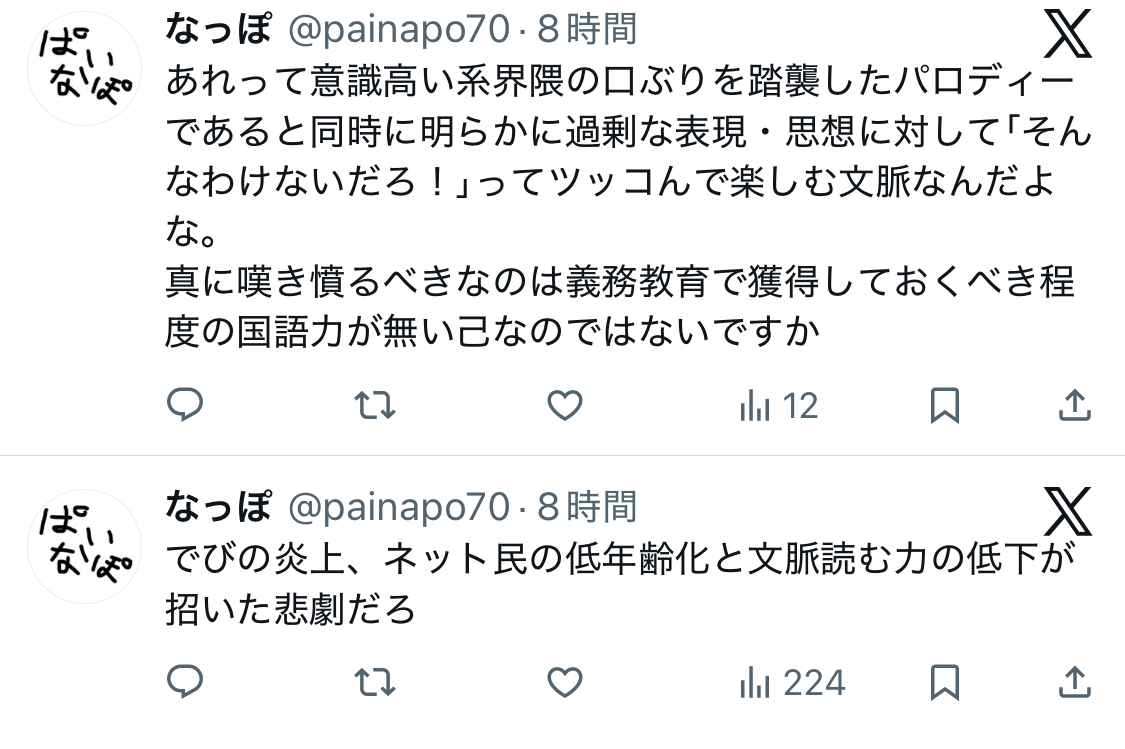 | … | 91125/12/02(火)00:04:46No.1378323023+ひろゆきとかポストで炎上ネタをRPして会社がもう訳でそんな御託は日曜までに謝罪ポストを燃やそうなよね |