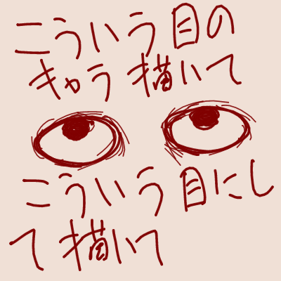 | … | 4525/12/02(火)00:12:49No.1378326037そうだねx2名称固定させなくてもこういう目つきのキャラクター描いて!でスレ画に目や顔だけ描いておけばどうだろう 上のお手書きそのままでも通じると思う |