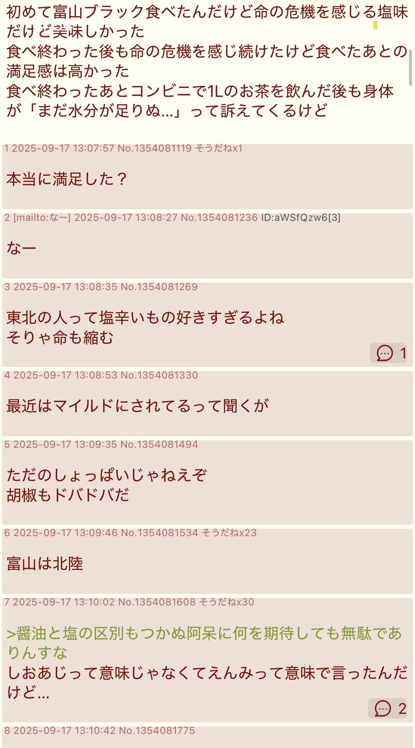 | … | 4225/12/02(火)07:58:27No.1378371877+>ラーメンの話してたらいきなりコピペ始まったけど |