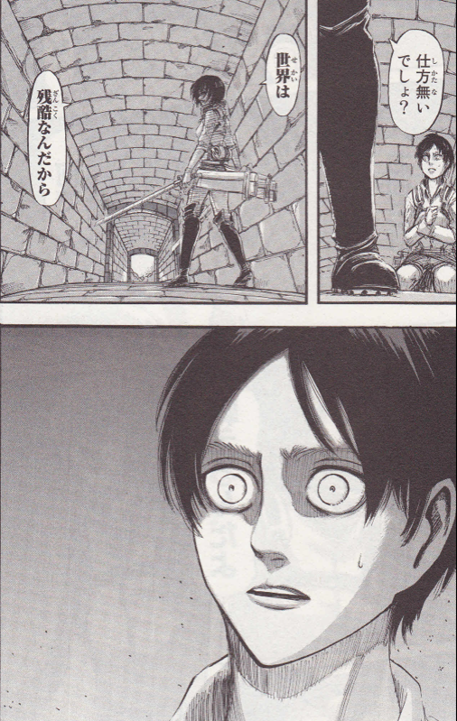 | … | 28925/12/04(木)02:27:36No.1379001764+>子供時代のジークやライナーは落第生だった訳だし覚悟キマると男として一皮剥けるみたいなのはこの漫画はある |
