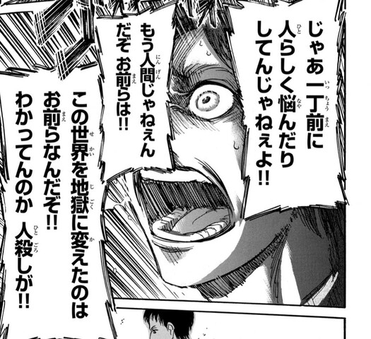 | … | 1225/12/04(木)01:04:33No.1378989736そうだねx9エレンを阻止することで発生する問題をジャンが指摘してたけど |