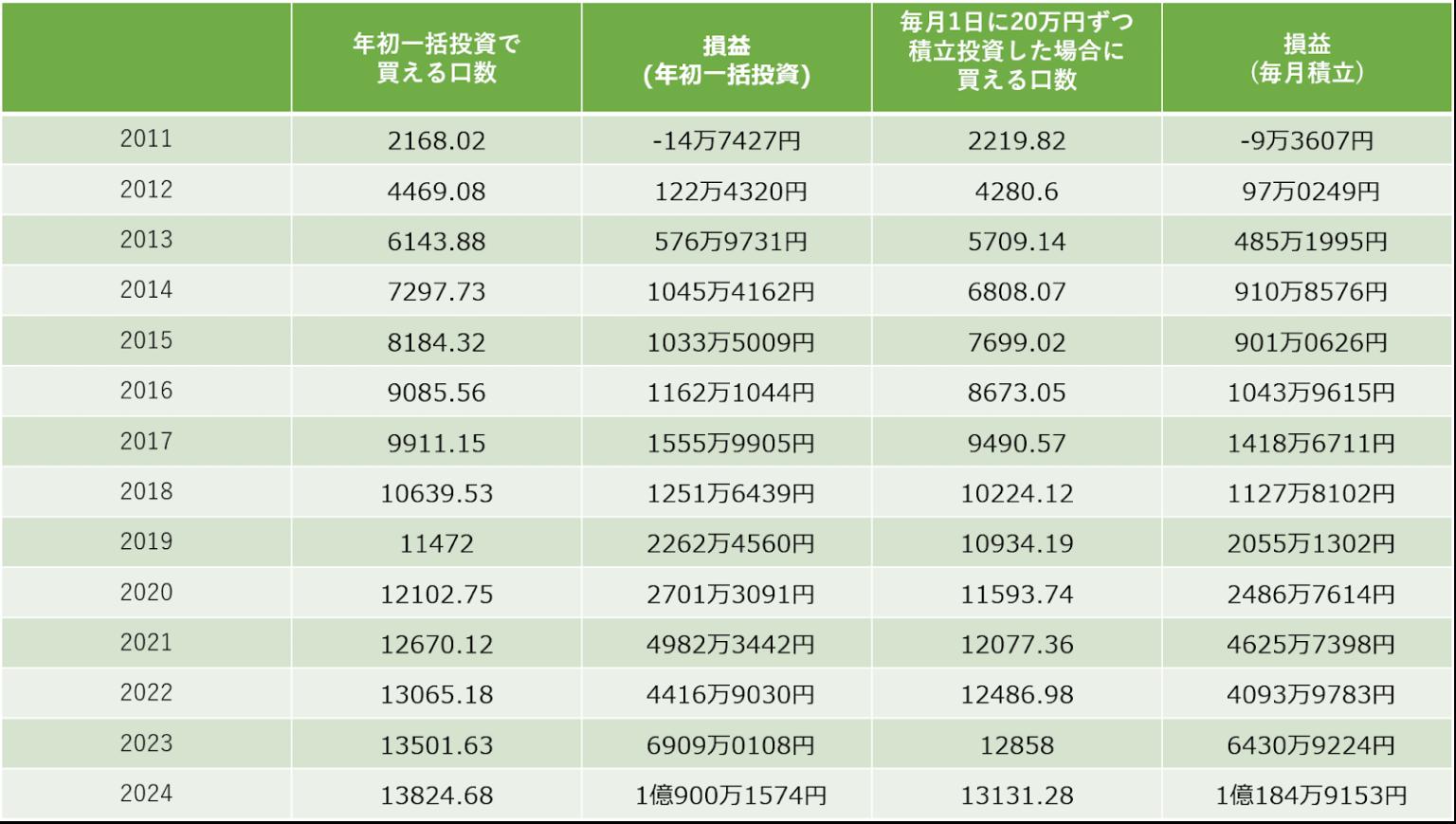 | … | 31825/12/04(木)17:04:00No.1379141153+年初一括より更に期待値重視するなら前年から余裕資金を特定口座にフルインベストメントで突っ込んで年明けに売却してNISAに移すというのもある |