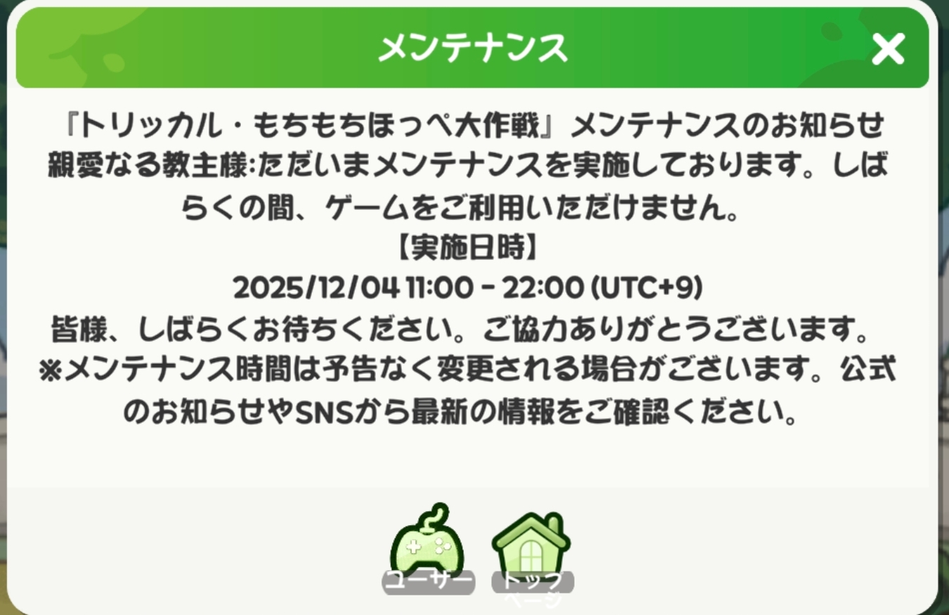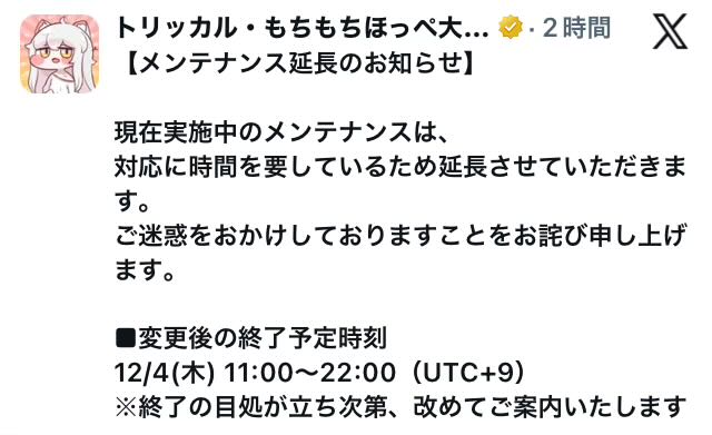 メンテまだ明けてねえにゃん?