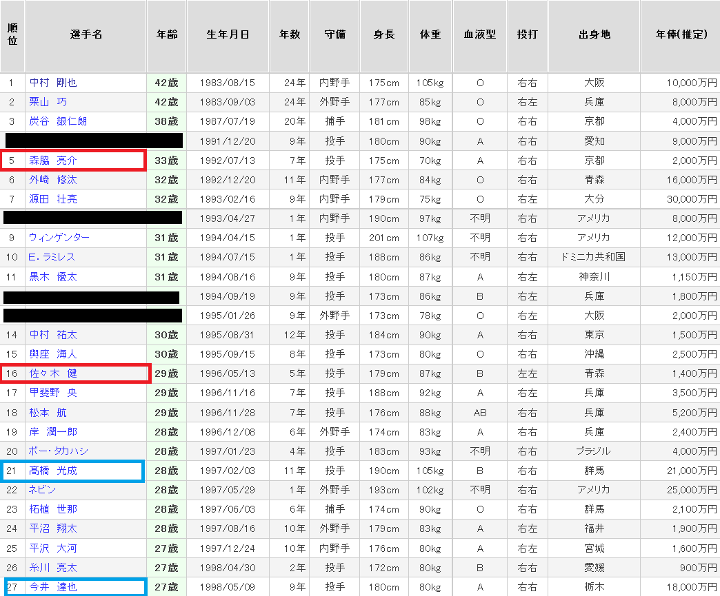 | … | 15825/12/05(金)05:10:06No.1379327109+東浜は投手リーダーとしては欲しいけど年齢的に高額複数年囲いたいかってのがネックで |