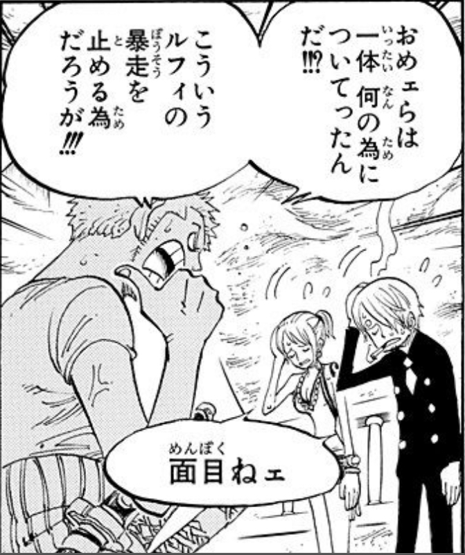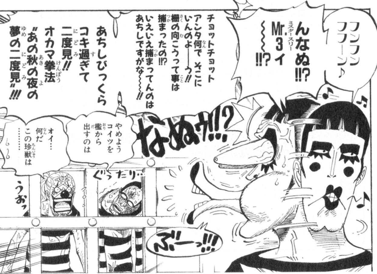 | … | 38825/12/06(土)00:38:23No.1379610106+カクがゾロに負けた後の二人の会話 |