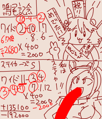 | … | 5425/12/06(土)15:29:23 ID:aLS7qFuANo.1379754733+くーワイドと馬連だけになってしまいました… |