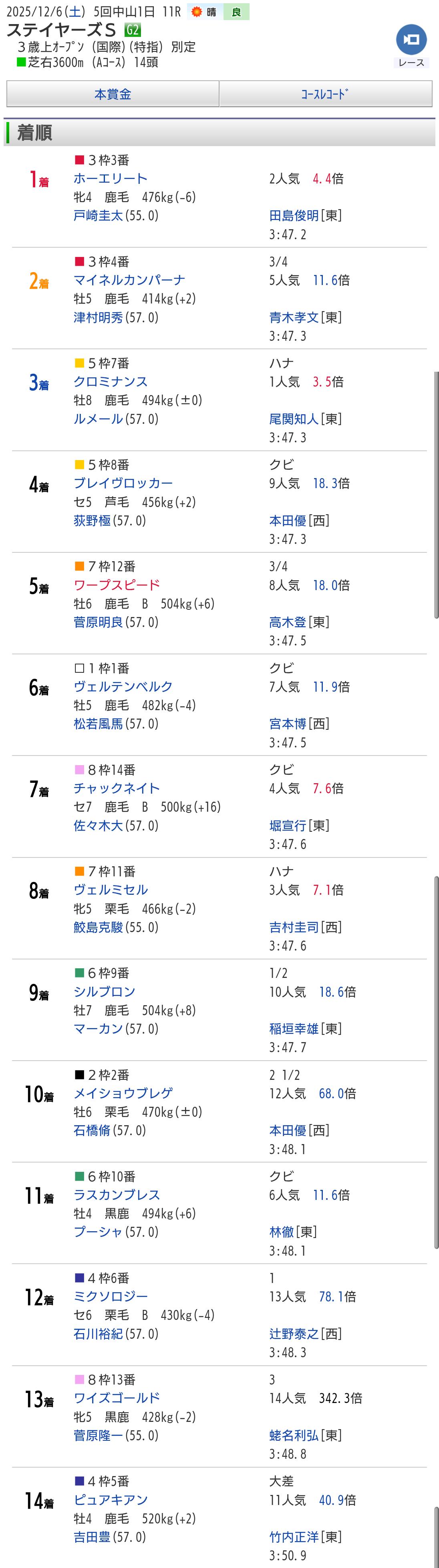 | … | 1025/12/06(土)15:25:53 ID:zMThKfBQNo.1379753806+>今日のドゥラエレーデの着順 |