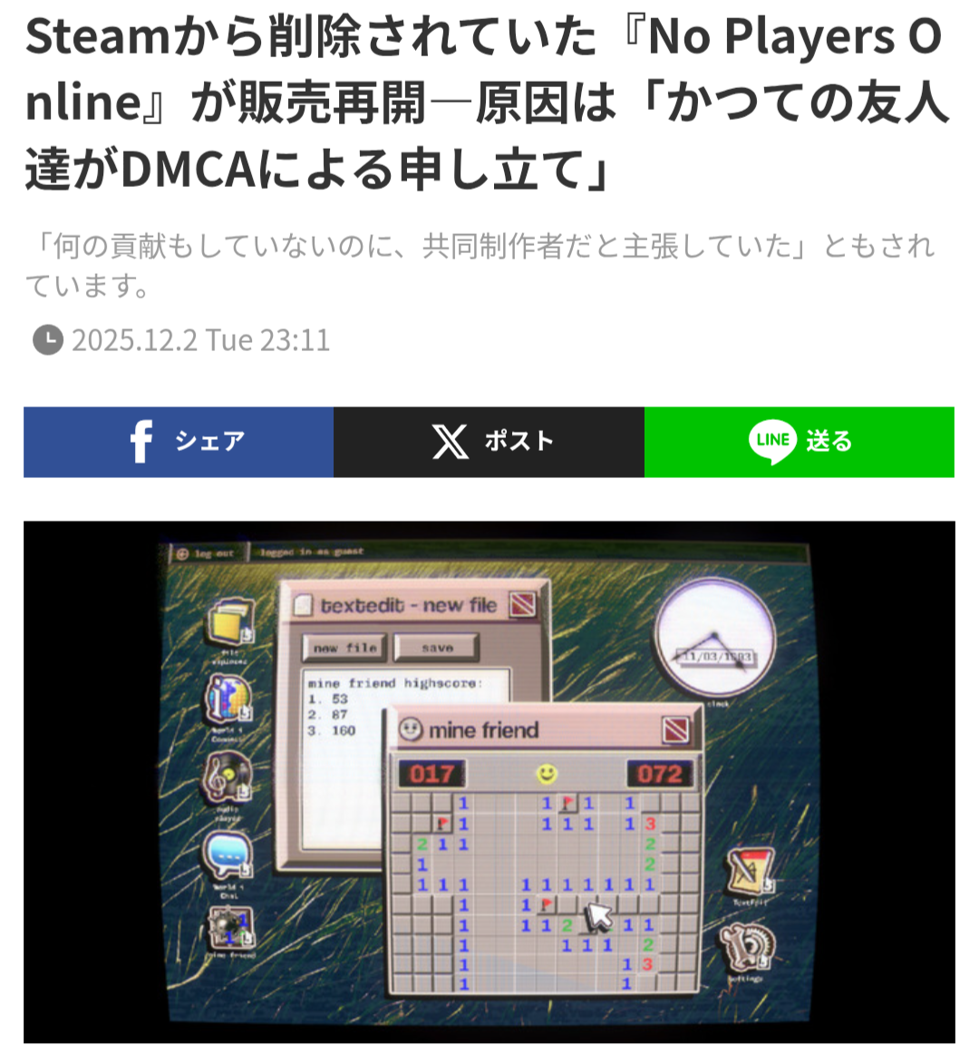 | … | 425/12/06(土)18:42:16No.1379806282そうだねx7>DMCAってそんな適当に通るもんなの |
