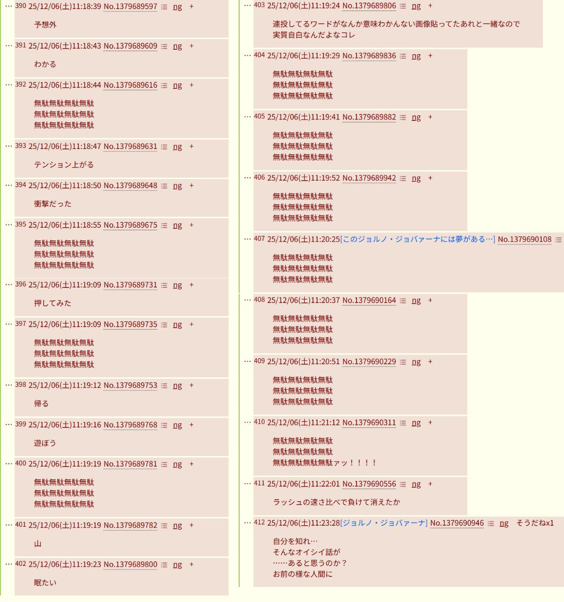 | … | 24425/12/06(土)20:48:04No.1379849604そうだねx2>コピペやってる人を見習えよ |