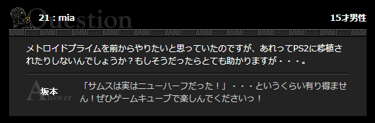 | … | 16025/12/07(日)00:24:14No.1379927077そうだねx3でもなんだかんだメトロイドは新作出るし需要もあるからいいよ |