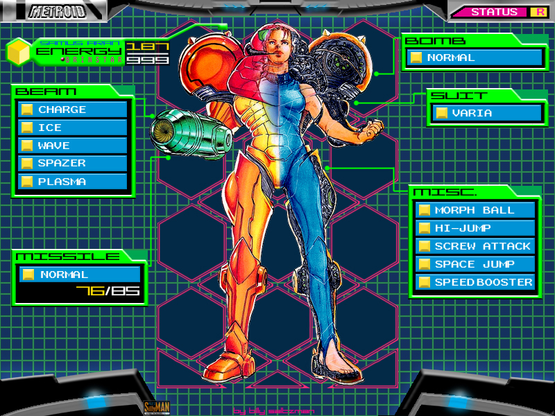 | … | 15425/12/07(日)00:22:03No.1379926298そうだねx1>フュージョンより前は素顔サムスの公式イラスト無いよ |