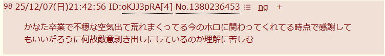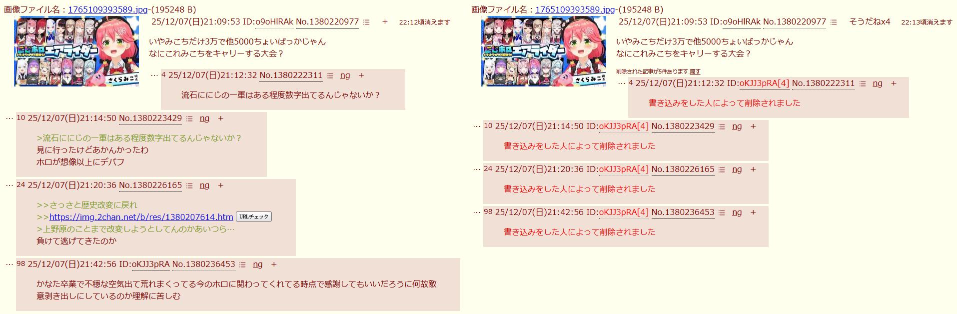 | … | 8025/12/07(日)21:38:21No.1380234346+>だからホロライブとのコラボ嫌なんだよ… |