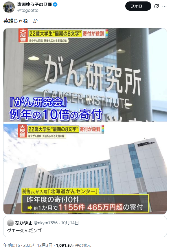| … | 425/12/07(日)22:51:26No.1380263614+最後の8文字をニュースにする気は? |