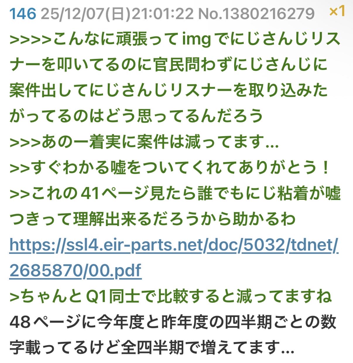 | … | 625/12/07(日)22:09:02No.1380247750+多分売上高全体で2025年4月期Q1が7346百万円で2024年4月期Q1が8948百万円だから勘違いしたんじゃね |