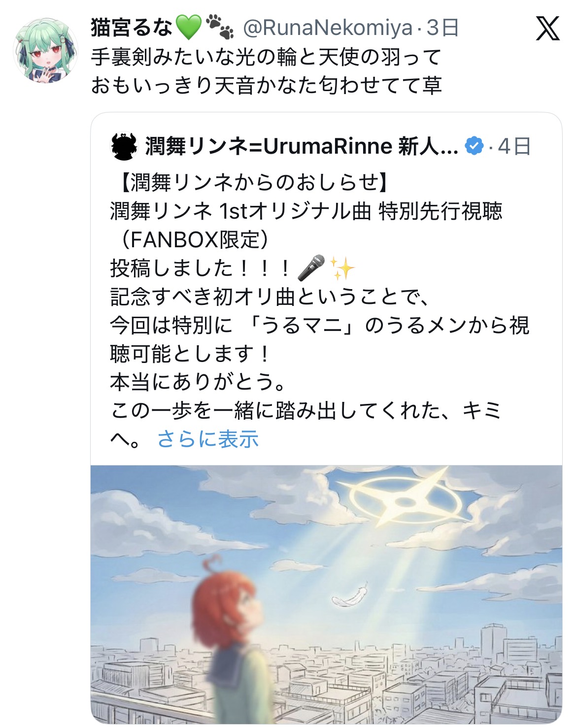 | … | 61925/12/08(月)12:48:46No.1380389193そうだねx1>上に出てたおかゆのスレがファンが立てたスレに見えるような価値観で好きとか言われても信用がまるでないからだと思いますが… |
