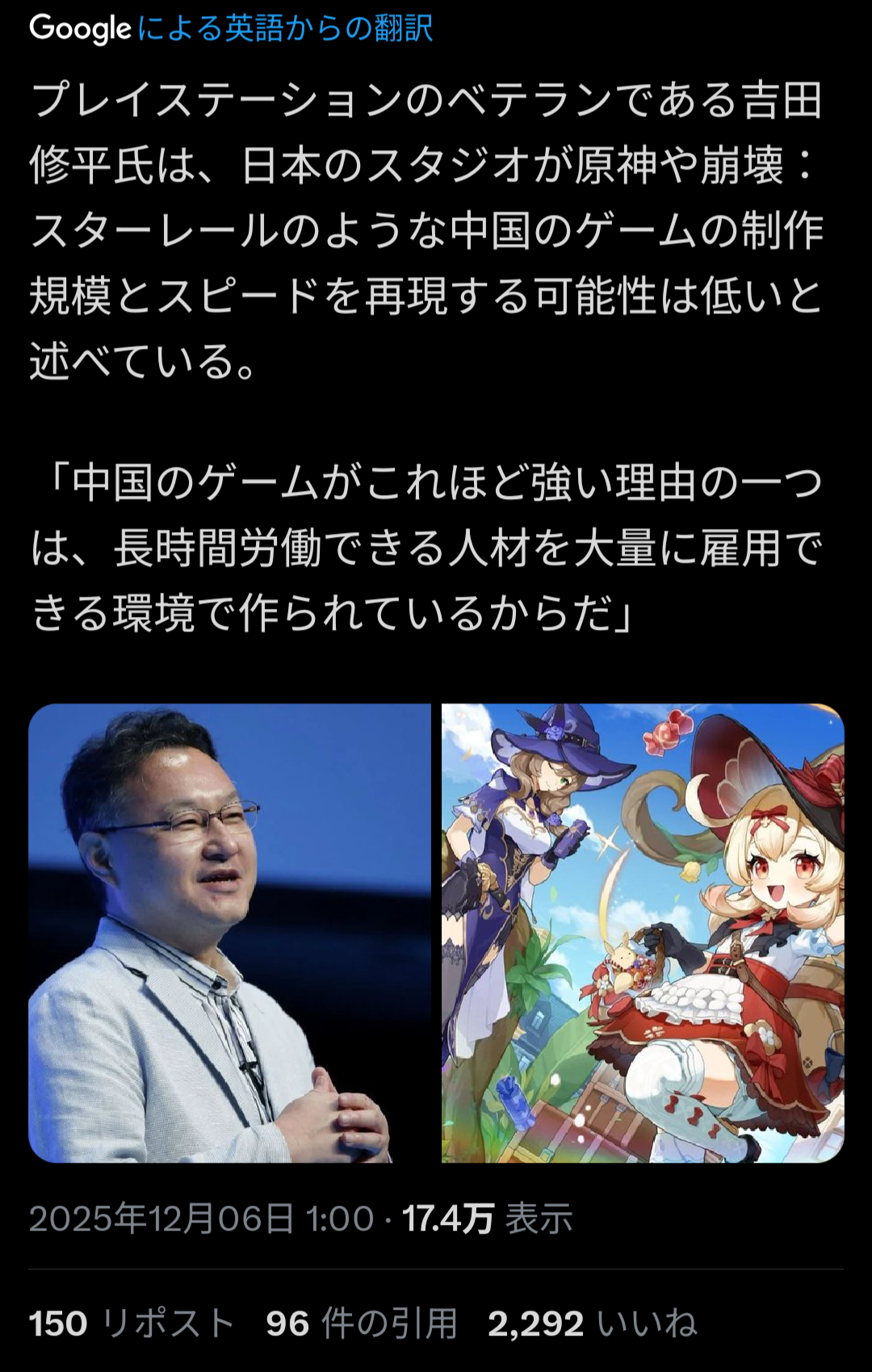 | … | 1425/12/08(月)12:50:05No.1380389610そうだねx6https://gamestalk.net/yoshida-shuhei-weplay-2025-china-indie-game/ |