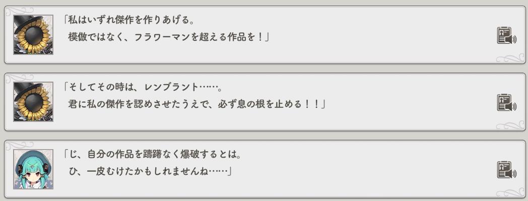 | … | 22625/12/08(月)14:25:09No.1380412348+絶技メインにする場合大体先手でアルテちゃんやセザンヌさんが敵殲滅しちゃうからこの二人の敏捷を調整するか完全手動で手加減させないといけないというジレンマがあるっすね |