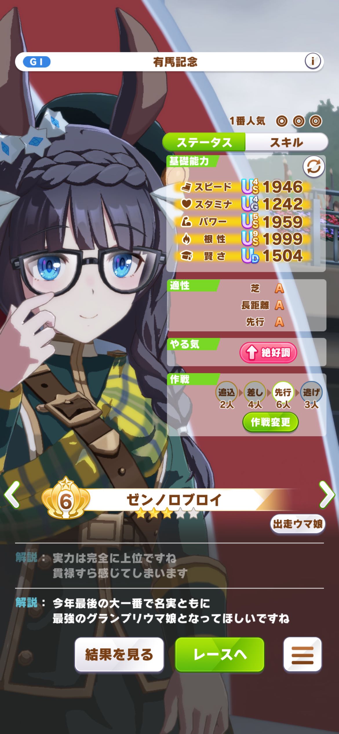 | … | 8625/12/08(月)22:26:50No.1380558197+>どうやっても負けないレベルで超絶バフが掛かるシニア有馬記念 |
