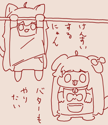 | … | 16525/12/08(月)22:30:06 ID:iWJIaDT6No.1380559478+バターを脳内で馬鹿にする会とか細かいセリフが思い出せないにゃん |
