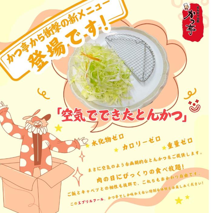 | … | 5025/12/08(月)22:00:27 ID:.OLF7fd2No.1380545851+>空気カツなんてどういう発想で生まれたものなのにゃん・・・ |