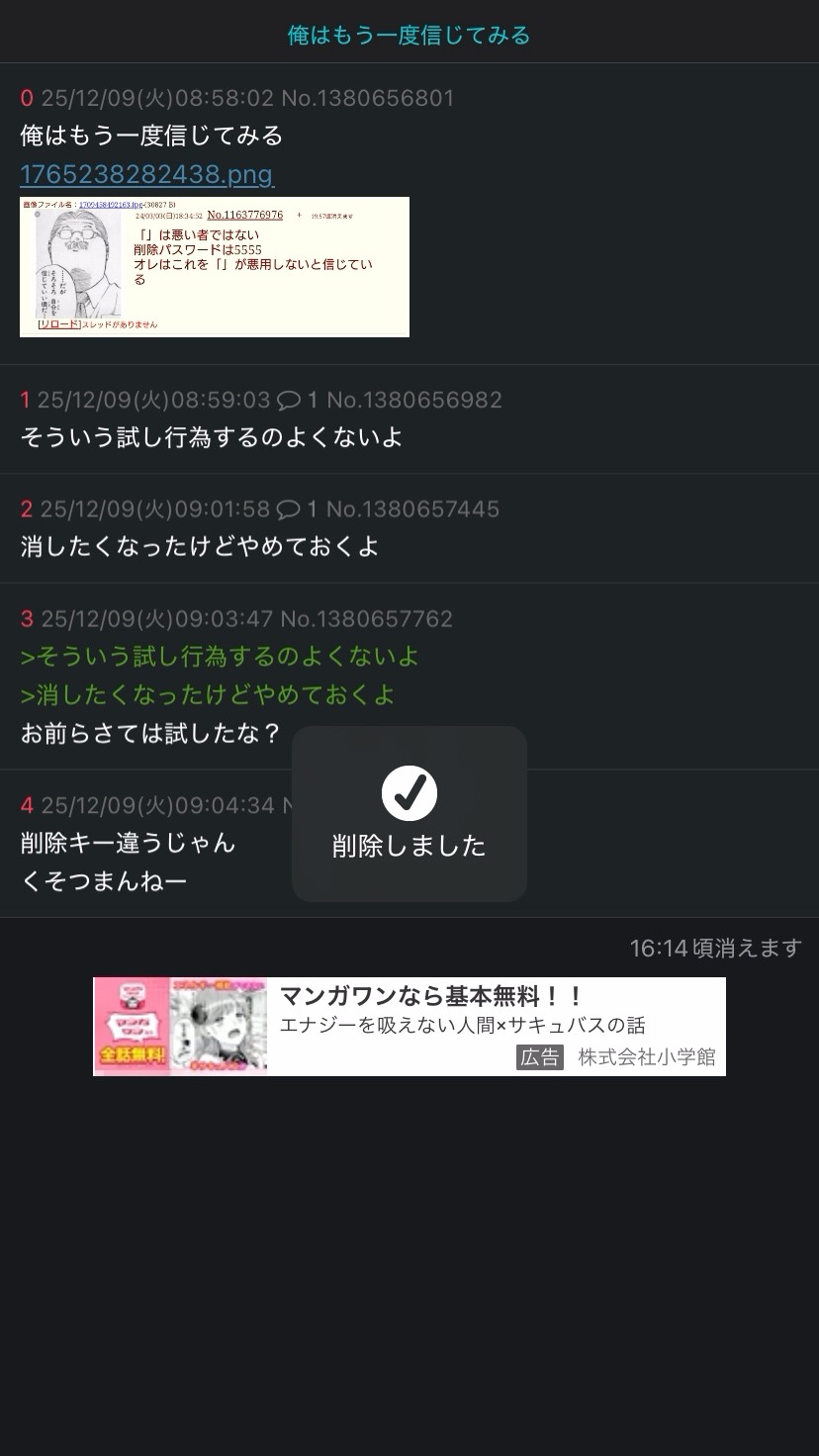 | … | 125/12/09(火)09:30:40 ID:FO7mJca.No.1380662351そうだねx3スレッドを立てた人によって削除されました |