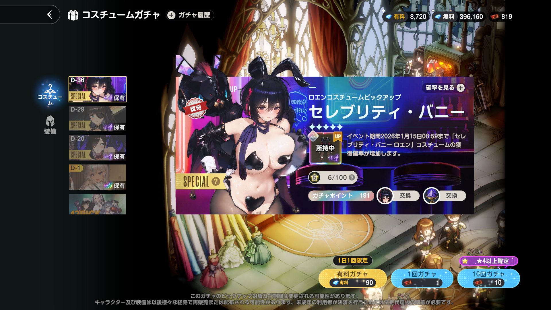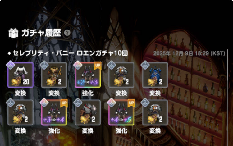| … | 9725/12/09(火)22:05:10No.1380856708そうだねx1バニーロエン引いた新人黒魔術師のためにちゃんと粉の交換で通常ロエンも用意されている気の利きよう |