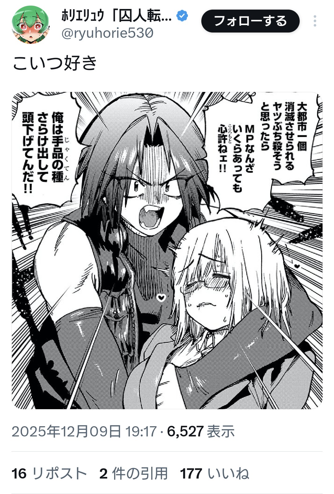 | … | 4525/12/09(火)22:25:11No.1380864144+>元々組んでたわけでもなく原作と作画で高め合ってる稀有なコンビ |