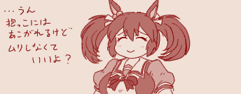 | … | 5825/12/09(火)22:57:26No.1380876252+>急にハグされてあわあわしてるスティルさんを吸い続けていたら大人しくなりました このウマ殺し! |