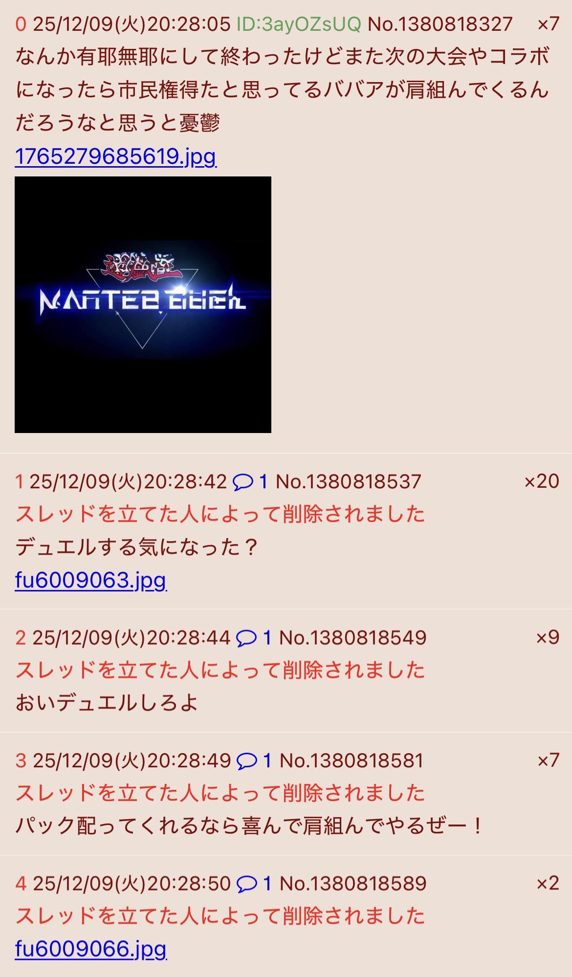 | … | 3025/12/10(水)00:59:29 ID:k4z4ayywNo.1380912658+出たなムジーナ |