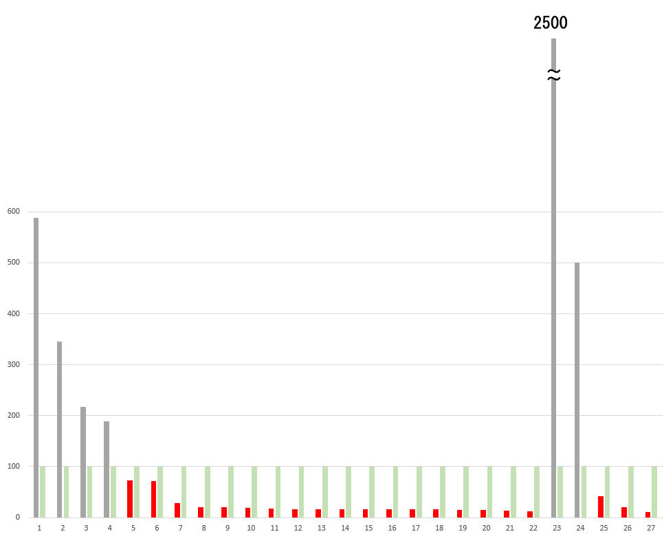 | … | 8925/12/10(水)11:15:11No.1380973519+>こういう計算で出てくる数字をグラフで横に並べるのはよくわからない |