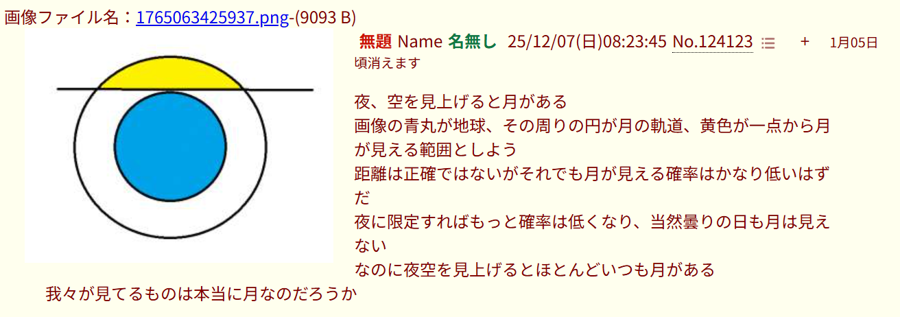 | … | 725/12/10(水)11:20:44No.1380974659そうだねx1月の満ち欠けを何だと思ってるんだ |