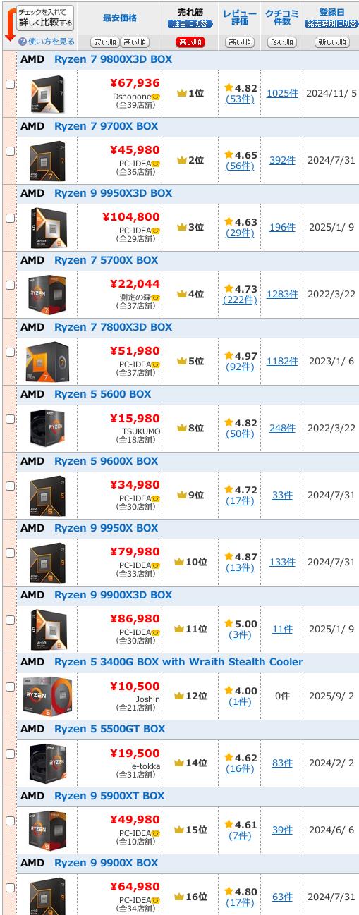 | … | 825/12/10(水)13:05:44No.1381004883+言うてもryzenなんて毎回細かいバリエーション出しすぎてどこかに微妙なやつ挟まるじゃん |
