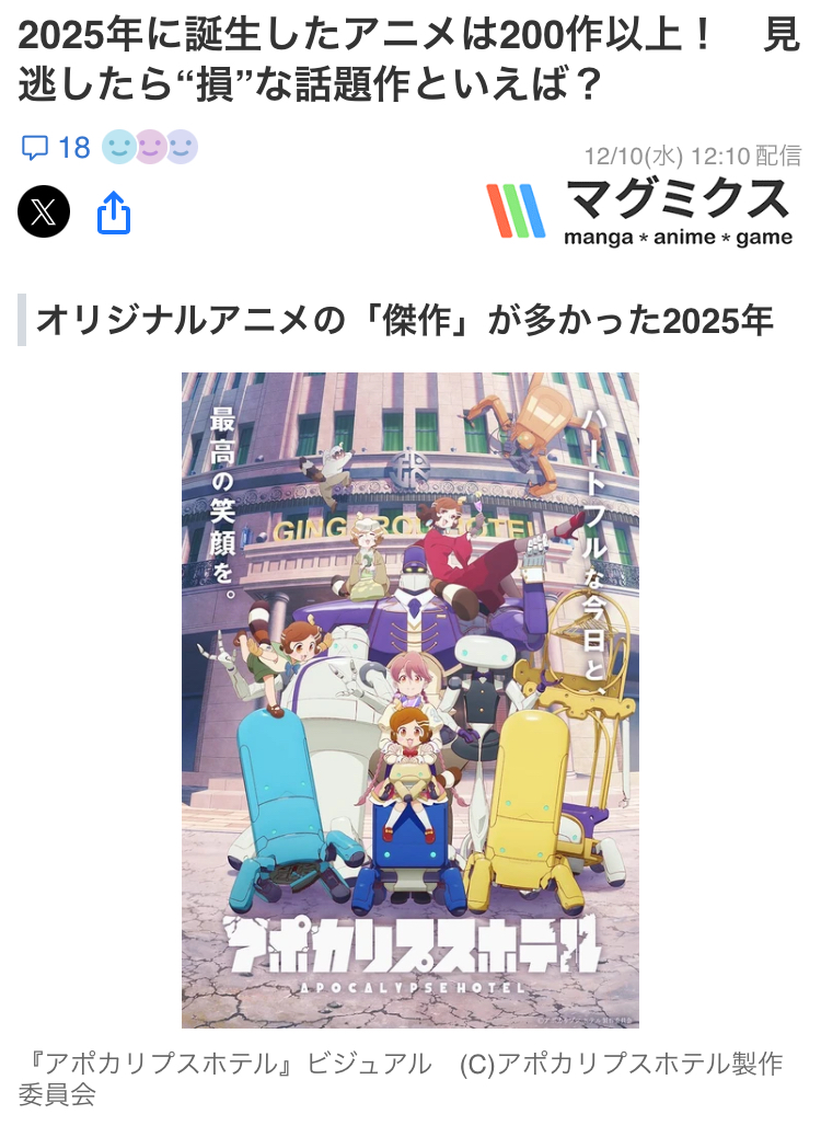 | … | 45725/12/10(水)16:00:39No.1381042690+アポカリプスホテルは名誉imgオリジナルアニメ |