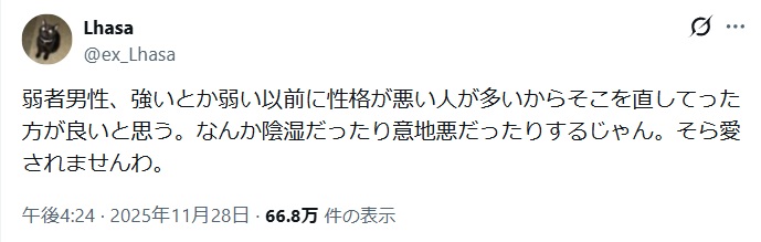 | … | 625/12/10(水)17:14:01No.1381057564+昔の弱者男性は硬派だった |