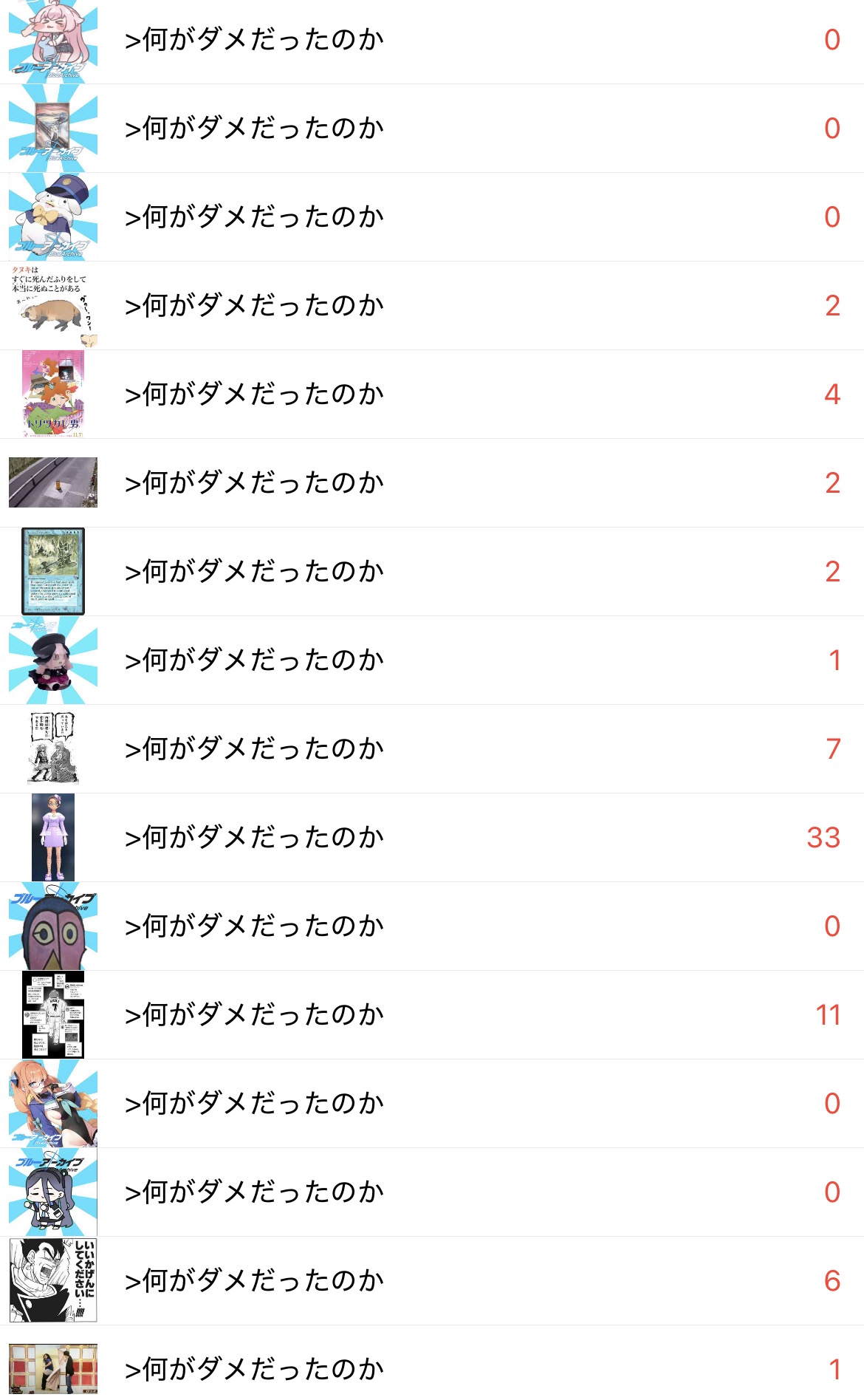 | … | 6425/12/11(木)10:43:06No.1381284037そうだねx6imgがゴミ箱の中から面白いものを探す場所になりつつある |