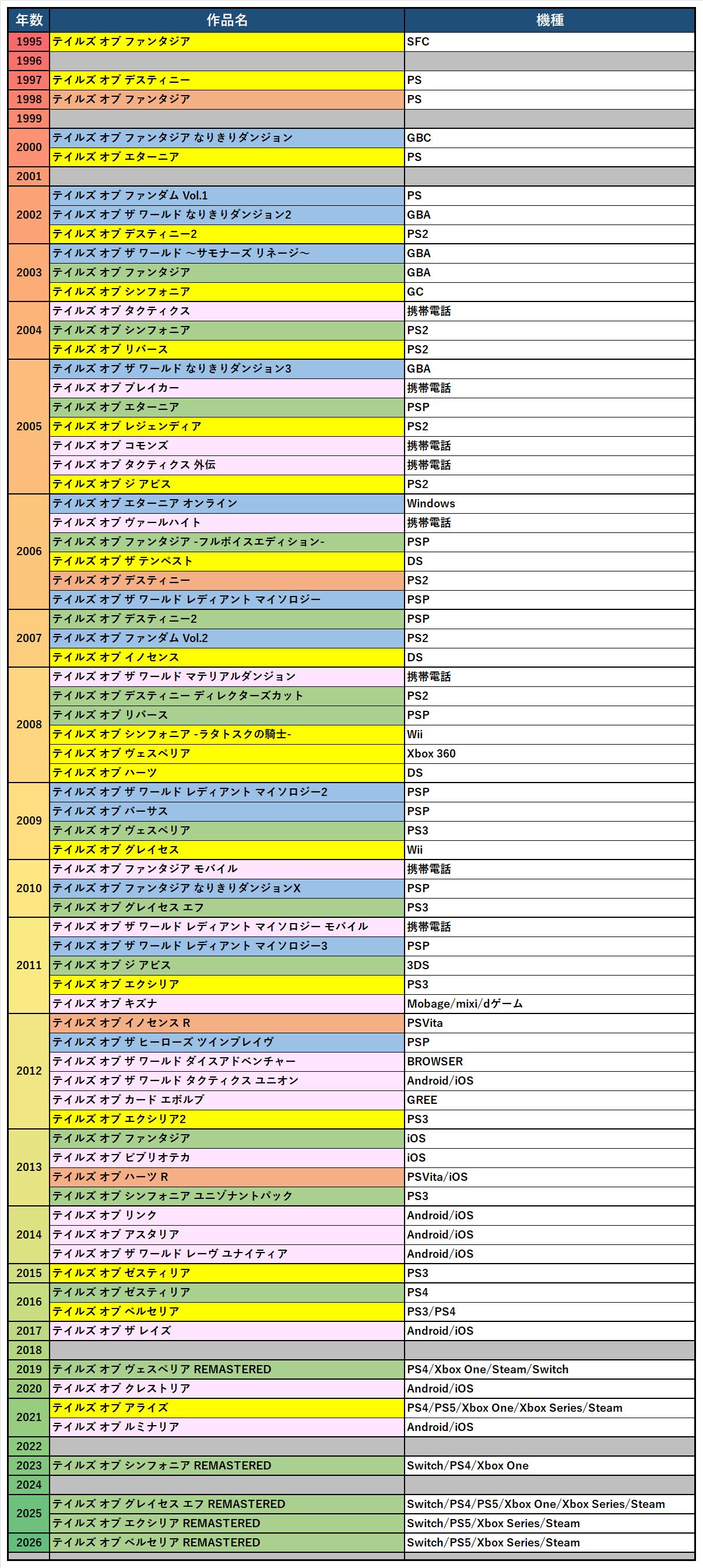 | … | 1825/12/11(木)13:08:56No.1381319676+テイルズはシリーズでもう19もあるのか…結構なハイペースだな… |