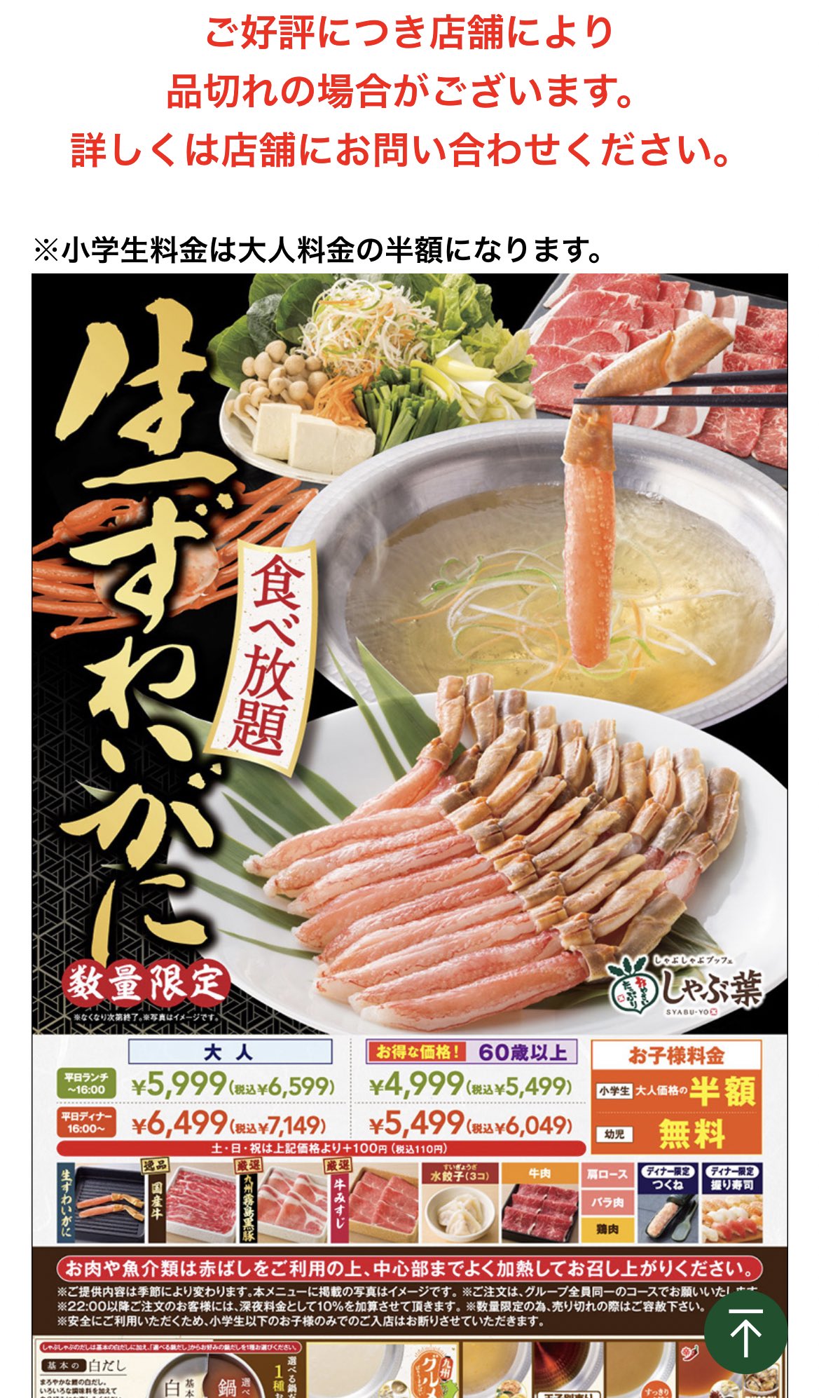 しゃぶ葉好きだし美味しいけどこの前国産牛メニュー頼んだら解凍ミスりまくってたからカニは期待できねーよ!