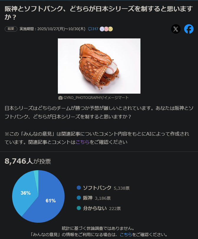 | … | 625/12/11(木)17:07:30No.1381375103+>野球の日本シリーズも阪神が勝つって言ってたのが多数派だったのに |