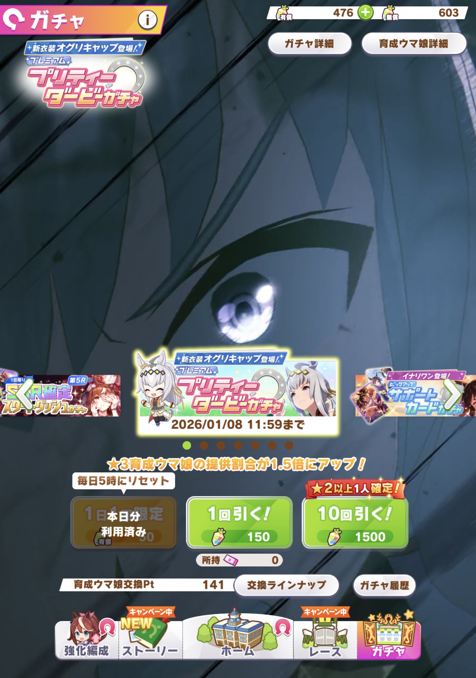 | … | 10425/12/11(木)23:41:28 ID:3lUYGneANo.1381514044+オグリさん引けたのはいおんですけど引いた時の固有演出でアプリが落ちました |
